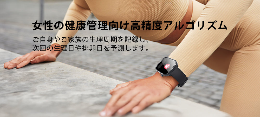 精度の高い心拍センサー採用により、正確性の高い心拍測定が可能です。また血中酸素レベル、呼吸数、睡眠、ストレス測定のほか、月経周期トラッキングも搭載されているので常に自分の健康状態を把握できます。※本製品は日常的な運動・健康管理のための製品であり、医療機器ではありません。本製品のデータは医療行為または精度を要する業務・専門的な計測には使用いただけません。