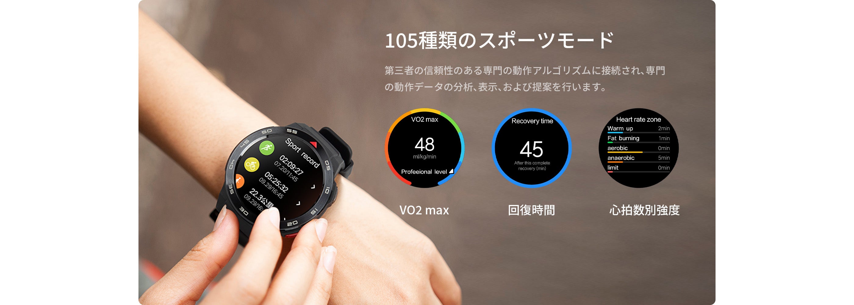 精度の高いGPSや105種類の多彩なスポーツモードが搭載され、防水性能も5ATMにグレードアップしました。