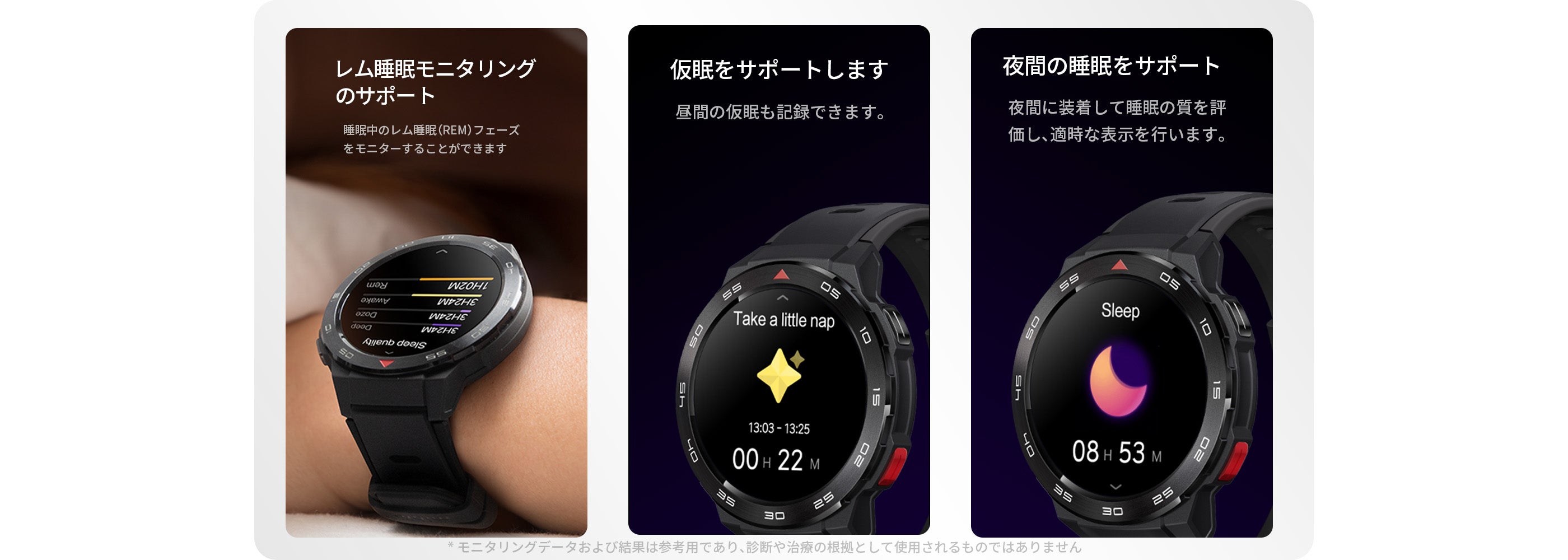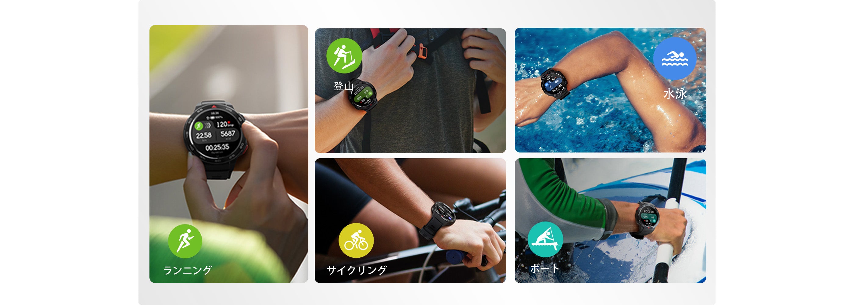 ランニング、水泳、テニス、バドミントン、ヨガなど様々なスポーツモードの移動距離、消費カロリー、運動時間などを記録することができるので、目標に向かってモチベーションを保ちやすく良い運動習慣が身につきます。また、GS Proは疲労回復時間や※記録内容はスポーツにより異なります。