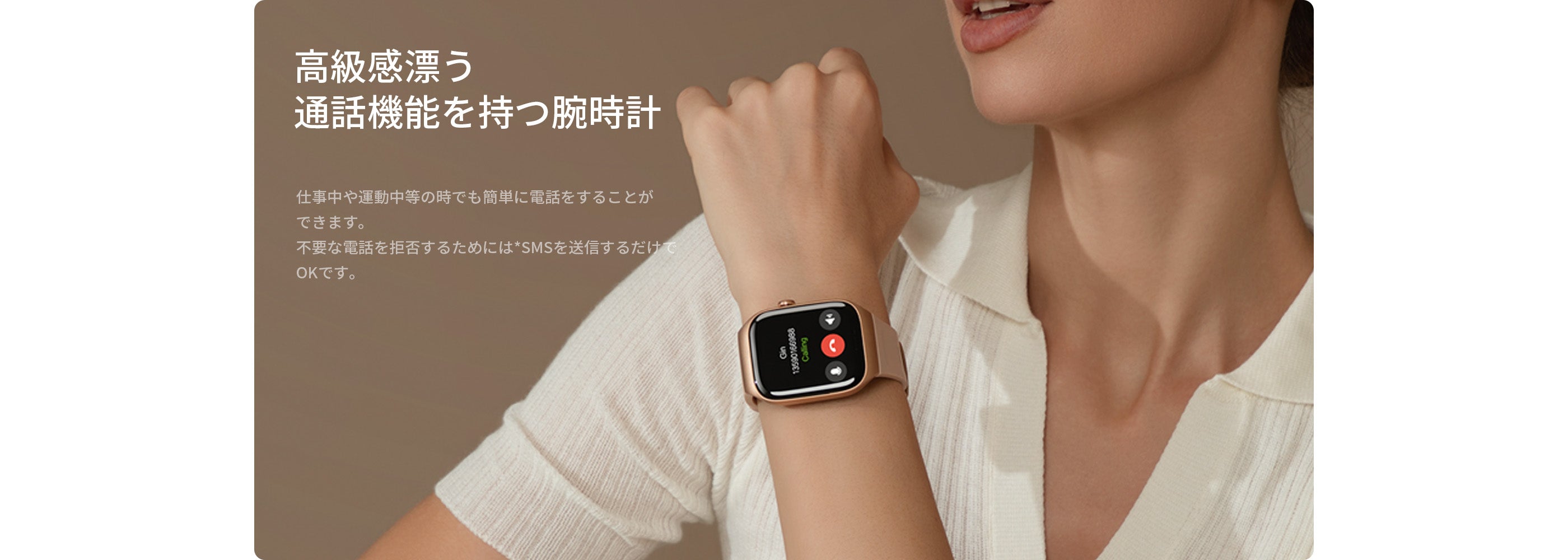 スマートウォッチから直接通話が可能。着信の応答も発信も、スマホを取り出すことなくT2でスムーズに操作できます。ハンズフリー通話にも快適に対応。