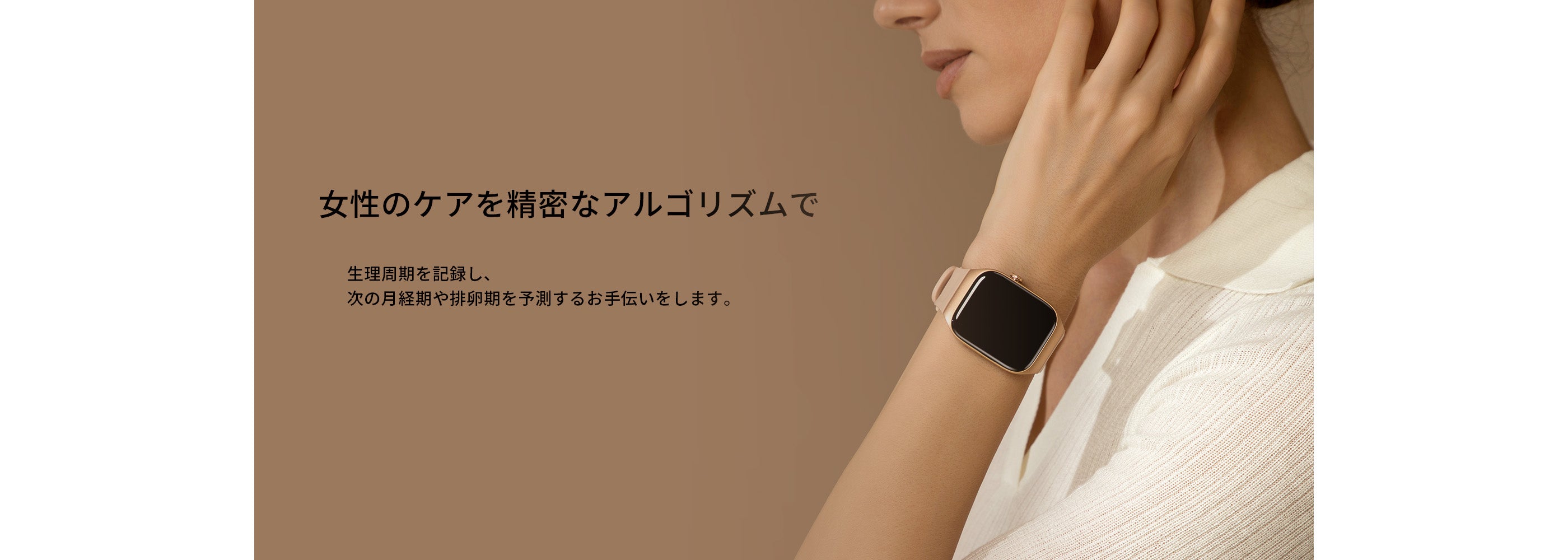 動きをより正確に検知。ワークアウトも日常もスマートに記録。手首の微細な動きや姿勢の変化まで検知し、運動時のフォームやステップをより正確に記録します。また、歩行・走行の自動判定や、画面の自動点灯(手首を上げる動作)など、日常使いでも高い精度で動作。日々のアクティビティを、ストレスなくスマートにサポートします。